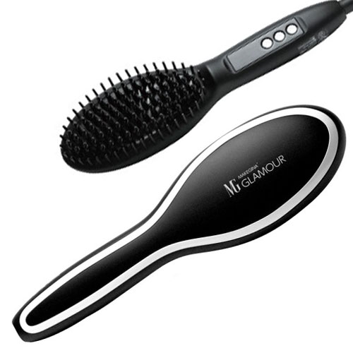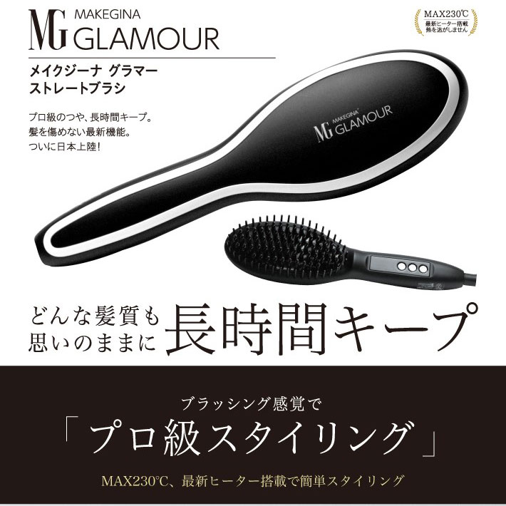 ヘアアイロン ストレート マイナスイオン 送料無料【MAKEGINA GLAMOUR メイクジーナ グラマー ストレートブラシ】【送料無料】【ポイント 倍】ブラシ型の ストレートアイロン!トルマリンプレート 採用で髪を傷めにくい! cyc